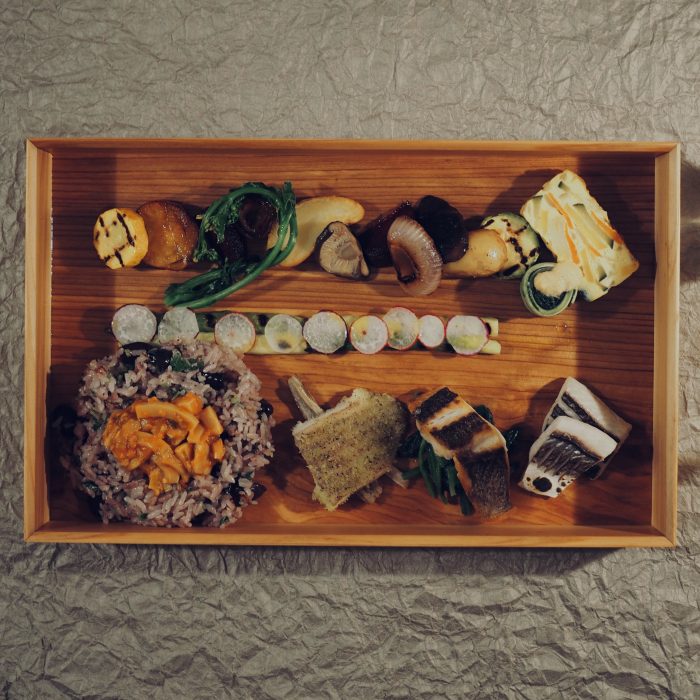 5. 赤米の茶飯 筍と空豆のトマトソース